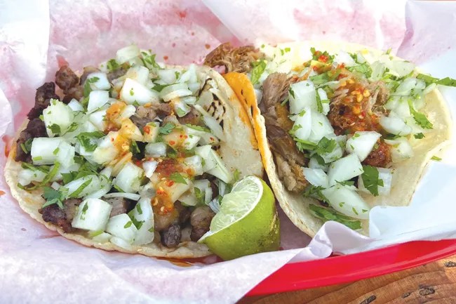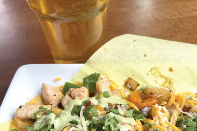 The Mexican cart at the River’s Place, Sopa, pod offers a good mix of traditional, or more common taco fillings such as carnitas, but for anyone on Team Pineapple, Sopa offers two piña-kissed tacos: pork adobo or the Walla Walla. Orders come with four tacos (starting at $14) and you can’t mix ’em, but once you try the Walla Walla taco, it’s hard to want anything else. Generously loaded with grilled chicken, additional ingredients include chunks of pineapple, diced bell peppers, grilled Walla Walla onions, cheese and a veritable garden full of chopped cilantro. River’s Place offers a dozen beers—a baker’s dozen if you include the michelada, which you should since it’s a killer taco companion, but for the Walla Walla, opt for Alvarado Brewing’s Mai TaiPA. Billed as a tropical IPA, the lush, island fruit flavors thrown by this hoppy delight make it a dream complement.