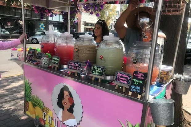 When you step up to the vibey Chulitas cart, there’s a choice of several different colorful, handcrafted drinks, many with complex ingredients, ladled out of huge Vitroleros (the traditional jars that hold aguas frescas). If you prefer, you can have that drink served in a large, rimmed cup. No, the rim is not just salt or sugar but a special Mexican candy that is melted down into a delicious spicy, sugar-like mixture that is perfect for rolling the edge of a glass or cup in; it makes you feel like you’re having a fancy cocktail. A fan from Florida, who has a second home here in Central Oregon, was raving about the Chulitas drinks on the recent afternoon that this writer was having her first samples.