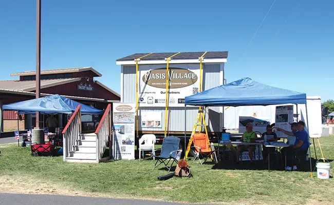 Oasis Village started as the Redmond Village Team under Jericho Road, a nonprofit that brings food, emergency assistance and housing resources to unhoused people in Redmond. It envisioned a village like Rogue Retreat’s Hope Village in Jackson County to address Redmond’s rising houseless population. The booth at the fair featured a structure that will eventually become one of Oasis Village’s 10-12 single-bedroom units upon opening, and possibly as many as 40 by completion.