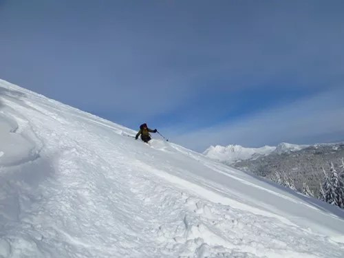 The forecast for today looks reasonable enough, it’s the prediction of rain tonight that has us worried. Rain would be a bummer for the 17 inches that Bachelor has received over the last 72 hours.