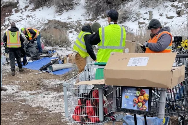 “There were several service providers that were down there having conversations with people, kind of chatting about what they needed to make sure that they were able to move, whether that was a cart to pull their items, whether they needed a new tent or other items,” said Stacey Witte, executive director of REACH, an organization that provides outreach to houseless people.