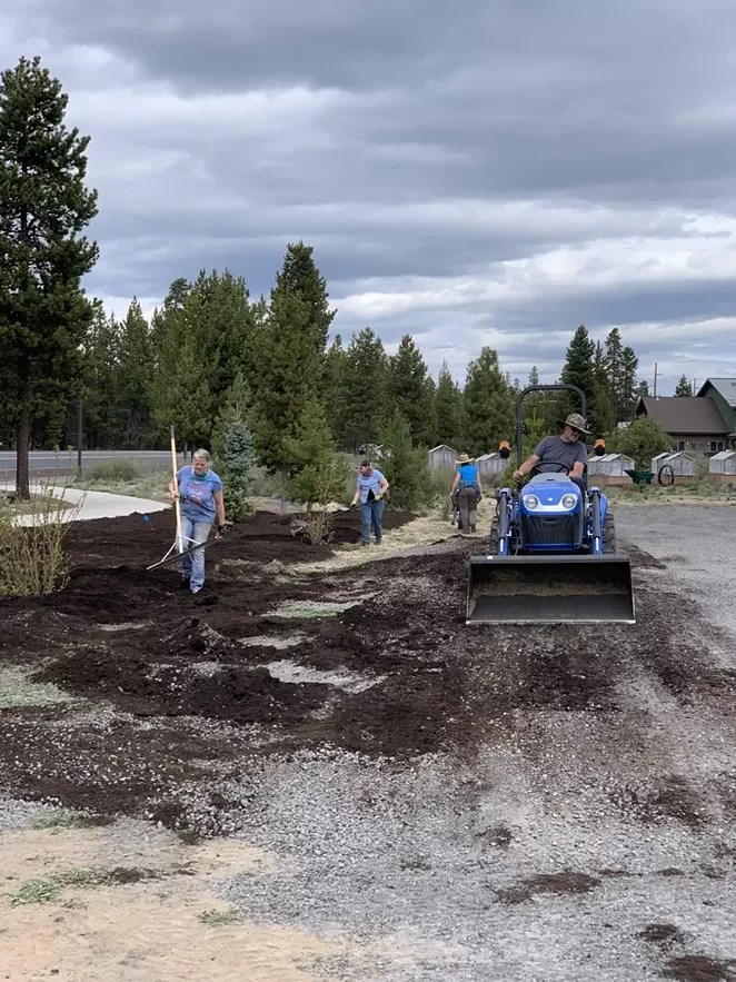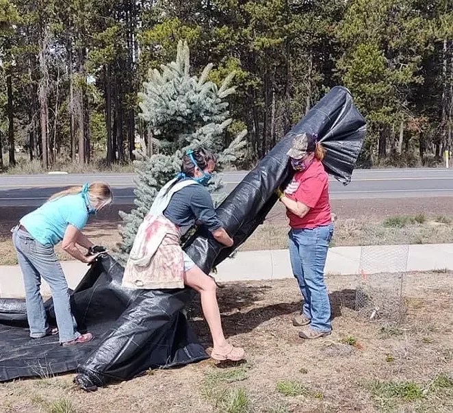 Before the Victory Garden concept came into bloom, the area in front of the La Pine Senior Center was naught but a field of weeds.ย With permission from the senior center, South County Gardening began to work on the land, gathering seeds before plotting the landscape with donations from La Pine Ace Hardware.ย Compost donated by Deschutes Recycling and Sunriver Recycling was then laid down, safely killing weeds without disturbing the soil.ย Fencingย material was graciously donated by Ace Hardware in La Pine and Mikeโs Fence Center in Bend. Elite Landscaping in La Pine is currently installing the fencing, framing in the designated 168 x 55 ft. area.
