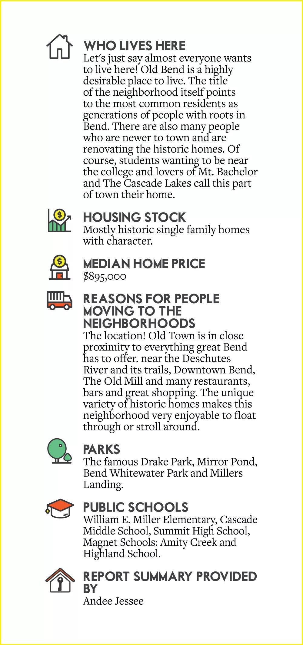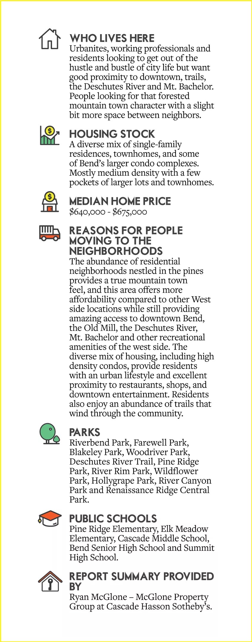 This neighborhood recap is just so sad. If you have lived here for any amount of time, this just totally shows you how Bend has changed. It just proves Bend is gone. Not saying anything about all the newbies. But Bend has changed not a cool place and it is sad. Use to be such a cool town. Now a place where nobody can afford to live. Just having to describe the neighborhoods is sad.