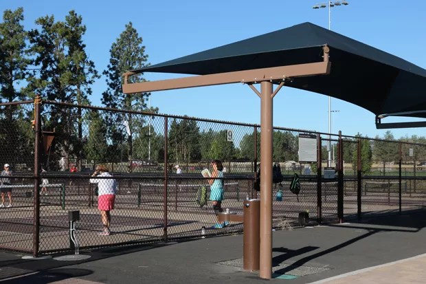 “When we came to Bend, we went looking for pickleball courts but they didn’t have any, so we (about 30-40 members of the fledgling Bend Pickleball Club) had to sneak onto tennis courts and bring our own portal nets and tape the lines,” said Zehnder. After a short while, the group attended a Bend Park and Recreation District meeting and asked for eight courts. Initially, BPRD wanted to build pairs of courts in different locations, but the group insisted that the courts be built at one site for tournament play and socializing.