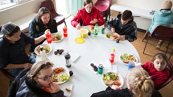 Just $24 covers a night of shelter, three meals and a shower. For $375, donors can “adopt” all five families for a night.